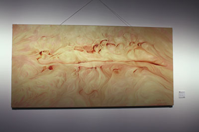 Leslie and I then went to the Red Gate Gallery in 798 to see the opening of the show featuring artists from Tibet, including Gade. We spent a lot of time with Gade and with the help of the interpreter were able to have a good conversation. Unfortunately he was going to be in Beijing during the entire period that we were going to be in Tibet. But Leslie was able to get the phone number and name of the proper contact person in Lhasa so we could meet with local artists who were part of the artist’s collective, there being no galleries in Tibet.