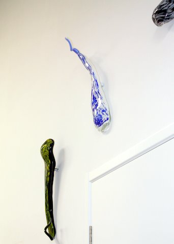 After a breakfast of scrambled eggs and some German bread Peter brought over, Peter and I spent most of the morning selecting and installing four glass sculptures at the Oasis Gallery.