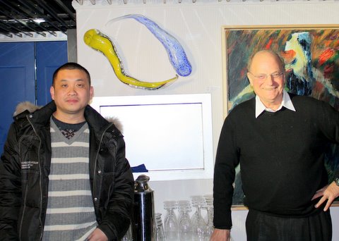 We were able to finish the packing and inventory at about 4 p.m, then Huang came by to take me to the New York BJ Restaurant/Art Gallery opening. I wanted to get there at the beginning, so if anyone came by that I knew I could talk with them. When I got to the restaurant Harvey Dzodin, a correspondent with the Global Times. He, Peter and I had a nice talk. Harvey had another party to go to, so he left. Five minutes later, Brian and his girlfriend, along with an artist from Iceland who was renting his other studio, stopped by to look at the exhibit.