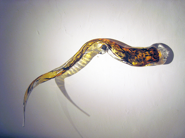 Charles Hecht's Glass Installation "3 Crocodile Fish" as part of a three person group show May 1 - May 15, 2009 at Broadway Gallery 473 Broadway, 7th Floor, New York, New York.